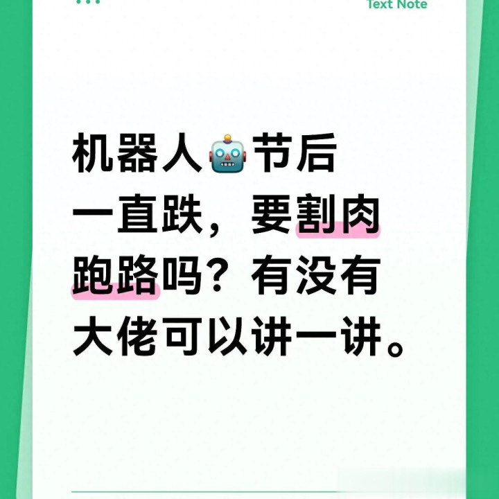 其实,割不割肉,从来不是看跌了多少天,而是看你手里的票还有没有未来。今天咱就把话说明白,机器人节后为啥跌,赛道的逻辑还在不在,普通人到底该怎么选。